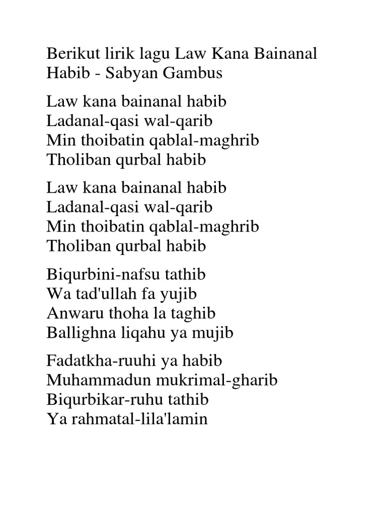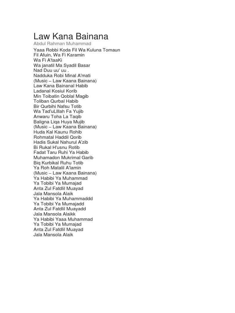 Law kana bainana habib ya habibi ya muhammad malay translation 29jan12. Law kana bainana al habib. Law kana bainana's composer, lyrics, arrangement, streaming platforms, and so on. Law kana bainana full song with lyrics. By humaira aulia @oyyasa 00:02.00title: