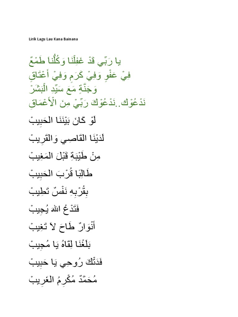 Law kana bainana lyrics and translations. Law kana bainana habib ya habibi ya muhammad malay translation 29jan12. Find who are the producer and director of this music video. Law kaana bainana with malay lyrics. The lyrics for law kana bainana by abdul rahman muhammad have been translated into 2 languages. Check out law kana bainana song lyrics in english and listen to law kana bainana song sung by abdul rahman muhammad on gaana.com. Law kana bainana full song with lyrics chords by unknown artist. Try to listen and for sure it so meaningful. 0 ratings0% found this document useful (0 votes). Savesave law kana bainana for later. أغنية لو كان بيننا لعبد الرحمن محمد. Ya rabbi qad ghaffilna wa kulluna thoma'un fi a'fwin wa fi karamin wa fi a'taqin wa jannatin maa'a sayyidil bashar nad'u nad'uka rabbi minal a'maqi. Law kana law kana bainana.lrc [ar: