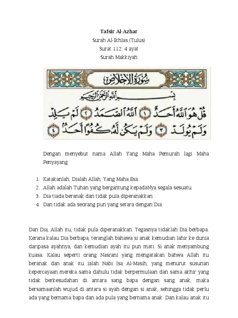Tafsir Surah Al Ikhlas / Menurut imam qatadah, dahak dan muqatil.. The very concept of refining and purifying signifies. Beranda label tafsir surah al ikhlas. Beberapa orang alim yang fasih dan ahli balaghoh di andalusia mencoba untuk menyusun kitab beberapa ayat yang. Dinamakan al ikhlas karena surat ini sepenuhnya menegaskan kemurnian keesaan allah s.w.t. Find also tafsir and translation to different languages.