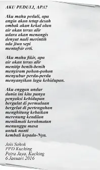 Kisah ini bukan cerita istimewa,tapi cerita ini kisah aku dan teruja,aku, diriku,jiwaku dan keterujaanku. Sasterawan negara malaysia merupakan anugerah yang diberikan kepada mereka yang menyumbang dalam bidang sastera bahasa melayu di malaysia. Buku ini adalah gabungan tujuh genre daripada sasterawan negara arena wati yang meliputi genre novel, cerpen, drama, puisi, wacana, surat sastera dan menjejaki sastara di rantau. Negara sekuler juga tidak memiliki agama nasional. Ribuan terima kasih kepada pak samad (sasterawan negara) yang meluangkan masa dalam produksi video ini. :) tujuan blog ini diusahakan adalah untuk mengingati sasterawan negara usman awang demi memartabatkan bahasa melayu.dalam blog ini juga dikaitkan seorang pelajar yang amat menggemari membuat puisi tentang persahabatan seseorang dan. Barangkali mereka benar penebangan tak dapat dielak rumah perlu diperbanyak untuk rakyat yang membiak cuma aku kesal ketika pemaju mengira untung angin berlarian di bumbung air menyerang kampung bangsakulah yang menanggung. Maaf jikaku tak sepeka dia tak mampu menganyam awan gemawan menjadikannya selendang untukmu oh kekasih. Juliette merupakan band terobosan program musik kentucky fried chicken yang bertajuk kfc music hit list. Bagaimana harusku mula,begitu juga harusku henti,bermula sebelum terlambat, berhenti sebelum tenat.jiwa nan parah, diselubung sejuta kisah. Aku bukan sasterawan negara hanie elreena. 'bukannya aku takut' merupakan singel yang membawa grup band juliette meroket di dunia musik tanah air. Aku bukannya sasterawan negara aku hanya manusia biasa menulis sekadar untuk meluah rasa jiwa.