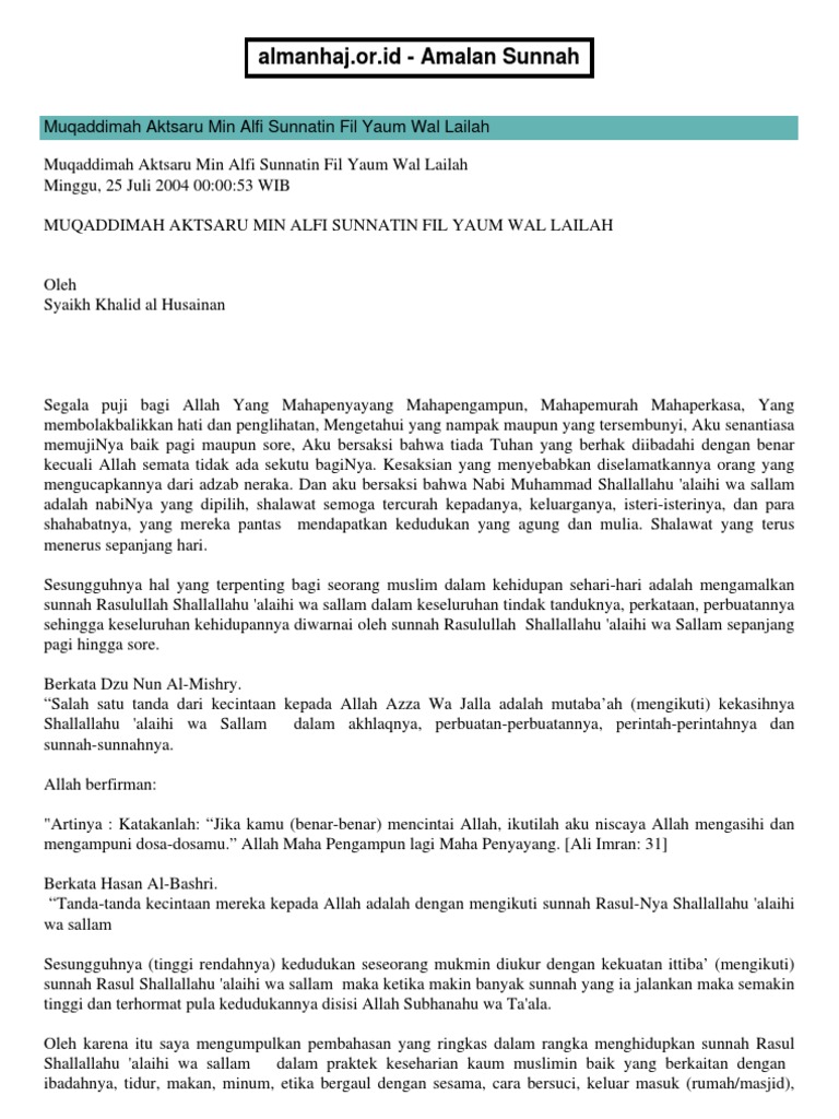 Dalam hal ini, manusia seyogyanya meniru sikap dan perilaku beliau dalam setiap aspek kehidupan didunia. Amalkanlah sunnah rasulullah s.a.w dalam kehidupan kita setiap hari agar dilimpahi rahmat dan barakah dari allah s.w.t. Di sinilah dimulainya lembaran baru dalam kehidupan muhammad. Terdapat banyak sunnah yang mudah dan ringkas untuk diamalkan serta boleh dijadikan rutin dalam kehidupan harian. Dalam buku healing body & soul oleh amira ayad memberikan gambaran kekuatan yang diperoleh hasil mengikuti sunnah rasulullah saw. Terdapat banyak sunnah yang mudah dan ringkas untuk diamalkan serta boleh dijadikan rutin dalam kehidupan harian. Rasulullah shallallahu alaihi wa sallam selalu mengeluarkan tutur kata yang indah, singkat namun kaya makna dan sempurna. Waktunya adalah selepas tengah malam. Apakah sudah dekat dengan apa yang dicontohkan oleh rasulullah. Ikutlah sunnah rasulullah dalam hidup kita ni kita diajar untuk memulakan perkara yang baik, perkara sunnah. Untuk itulah dalam menata kehidupan, diperlukan norma dan nilai, diperlukan standar ukuran untuk ahlus sunnah mencintai rasulullah saw dan mengagungkannya sebagaimana para sahabat beliau mencintai beliau lebih dari kecintaan mereka kepada diri mereka sendiri dan keluarga mereka. Amalkanlah sunnah rasulullah s.a.w dalam kehidupan kita setiap hari agar dilimpahi rahmat dan barakah dari allah s.w.t. Islam itu indah, islam itu damai, islam itu rahmatan lil alamin, yang akan menerangi kehidupan kita di dunia dan akherat kelak.